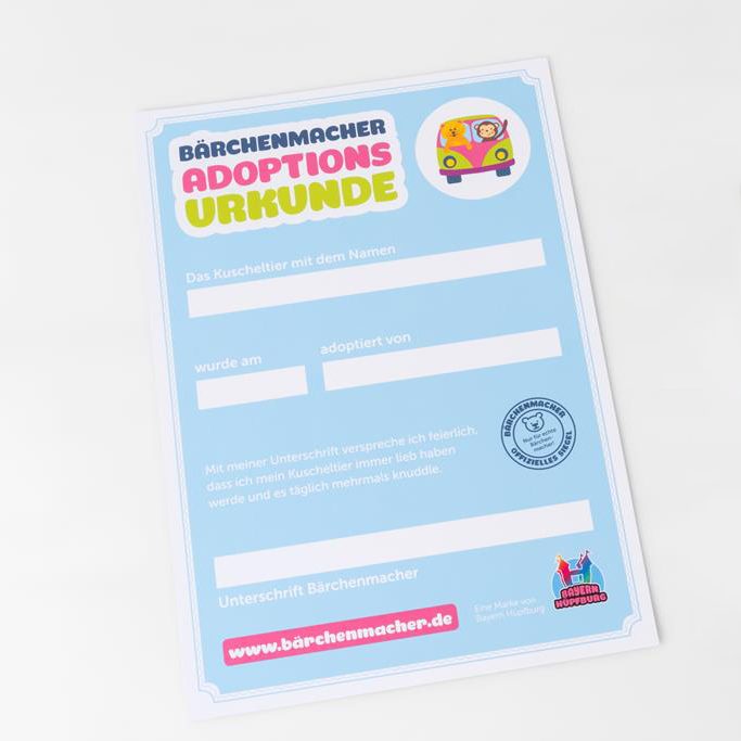 Hier kann das Kind Namen und Geburtsdatum des neuen Freundes eingetragen. Mit der Unterschrift verspricht es, das Bärchen immer lieb zu haben und täglich zu knuddeln.